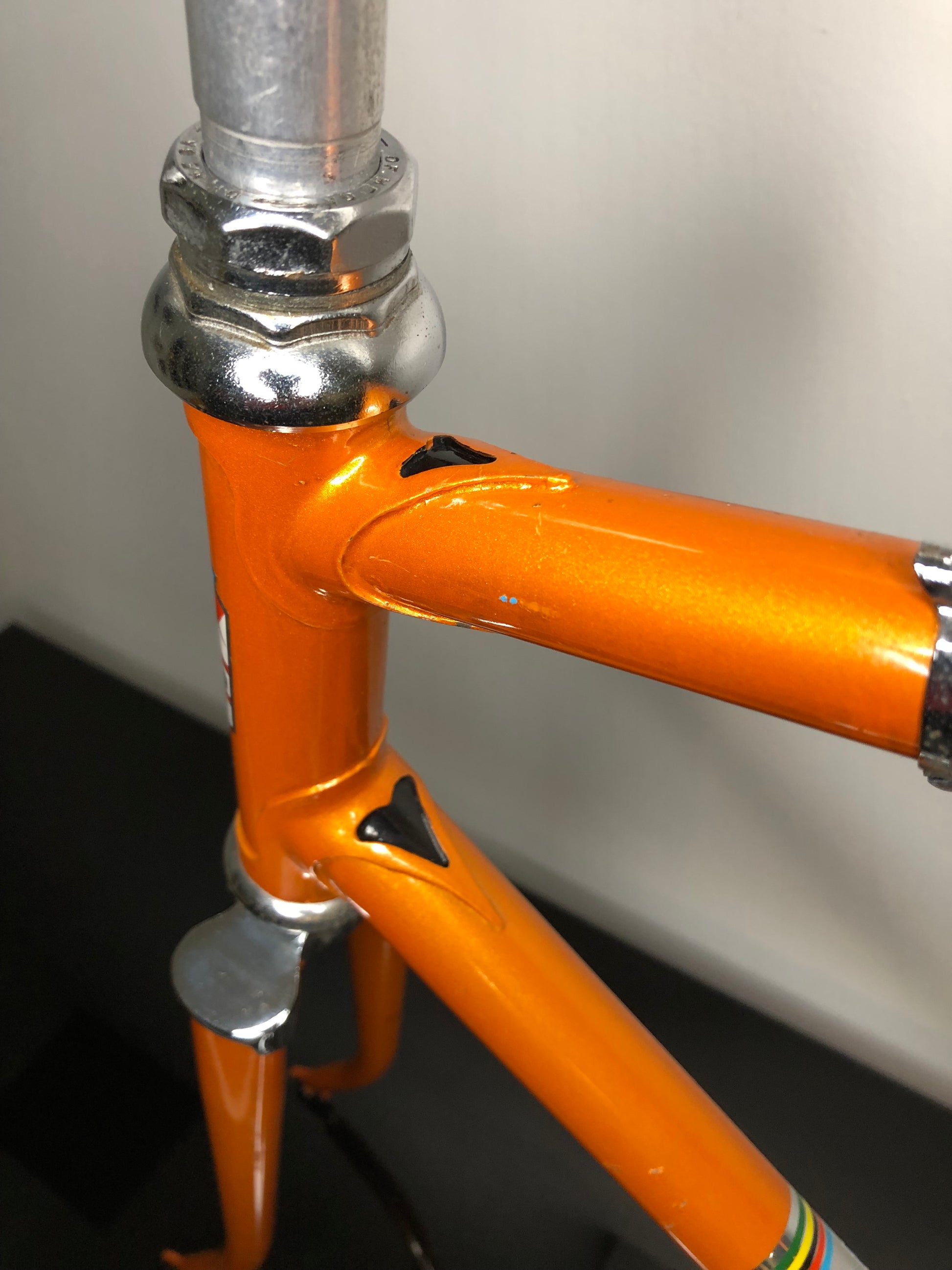 Il telaio è in ottime condizioni e la verniciatura è originale. C'è qualche segno dovuto all'uso e all'età.
