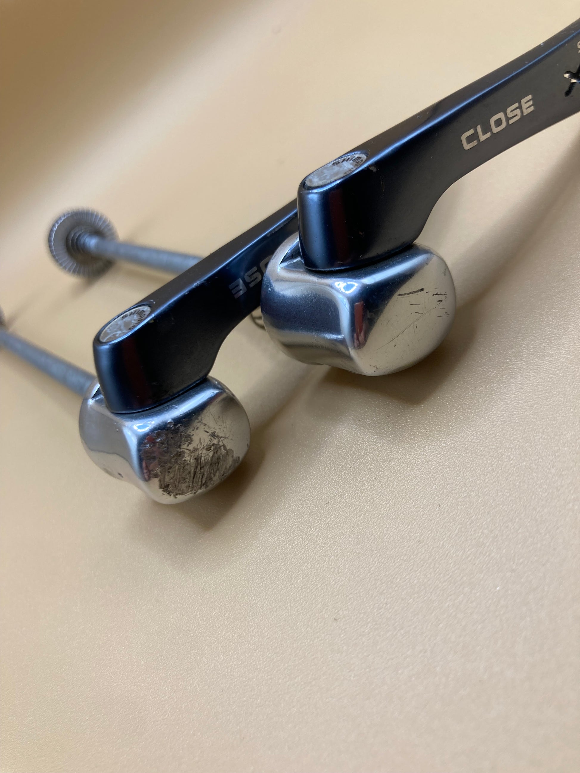 Tutte le grafiche sono perfette. I mozzi sono scorrevoli come da nuovi, non si avverte nessuna irregolarità girando l'asse a mano. Le foto mostrano tutti i dettagli.